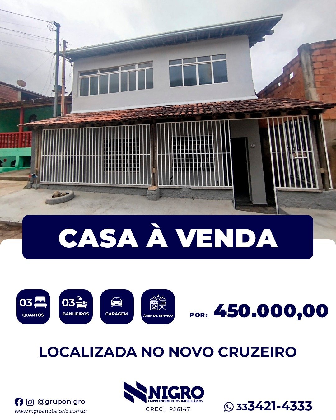 🏠 BAIRRO NOVO CRUZEIRO🛏️03 QUARTO SENDO UMA SUÍTE🛋️SALA🥘COZINHA🚽BANHEIRO SOCIAL🧹ÁREA DE SERVIÇO🚗GARAGEM PARA 1 VEÍCULO💰VALOR: 450.000,00